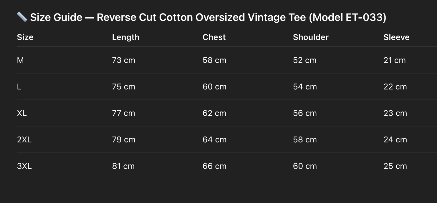 Fit: Oversized vintage cut → expect a boxy, relaxed fit.